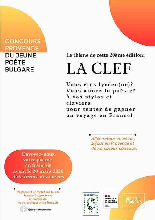Nous avons le plaisir d'organiser à nouveau le concours Provence du Jeune poète bulgare, après l'arrêt imposé par la crise COVID...